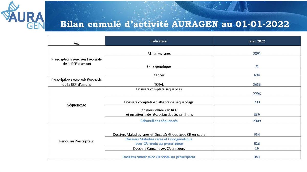 Accueil Actualités / évènements Bilan cumulé de l’activité AURAGEN au 01-01-2022