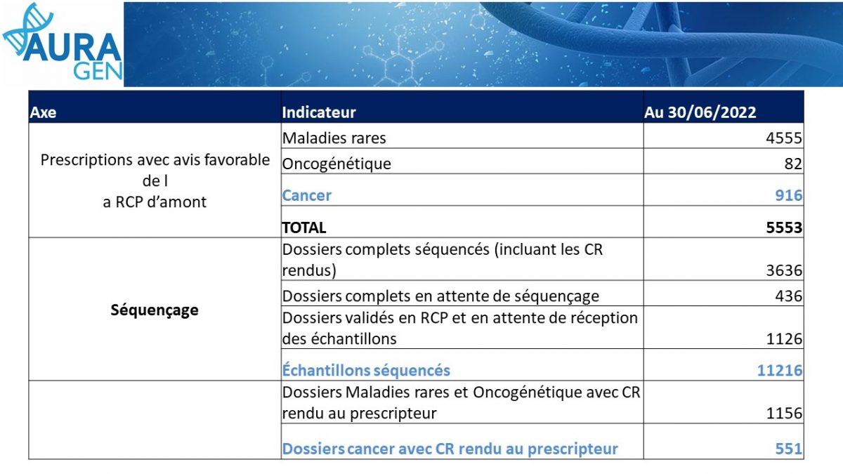 Accueil Actualités / évènements Bilan AURAGEN 02-11-2021 Bilan activité AURAGEN-4 septembre 2023 Bilan d’activité AURAGEN cumulé au 30 juin 2022